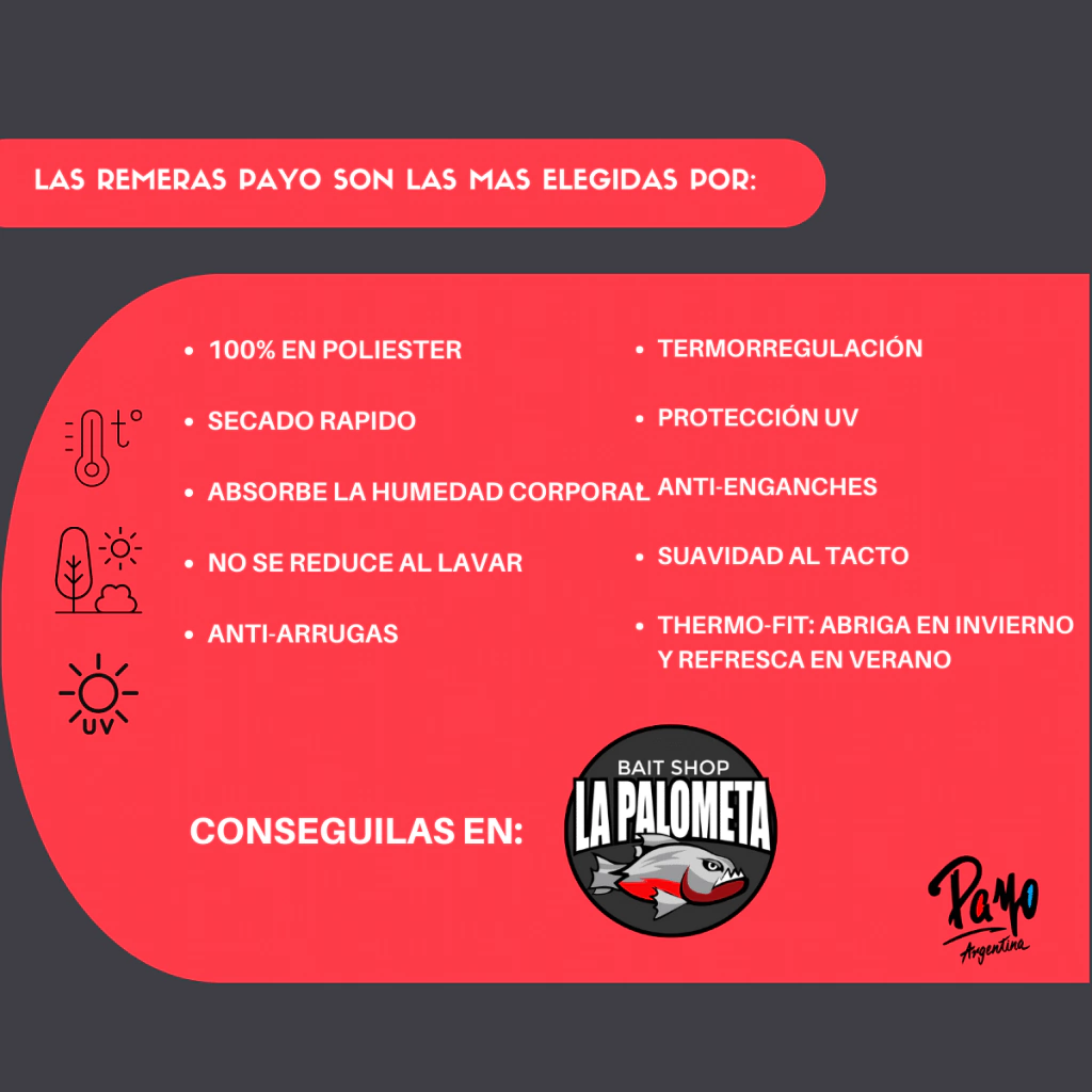 Descubrí la Remera Payo Surubi, tu aliada perfecta para la pesca deportiva y actividades al aire libre. Confeccionada 100% en poliéster por Eurosport Argentina, esta remera no solo es estilosa, sino que también está diseñada para ofrecerte lo mejor en comodidad y funcionalidad.